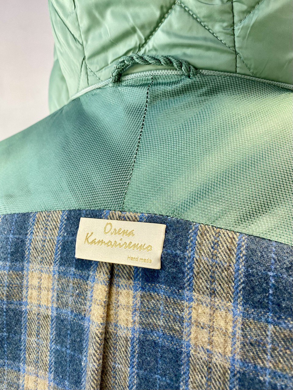 Пальто із стьобаної тканини прямого силуету, з ексклюзивним моделюванням нагрудної витачки і рукавом реглан. Зручний капюшон з коміром.